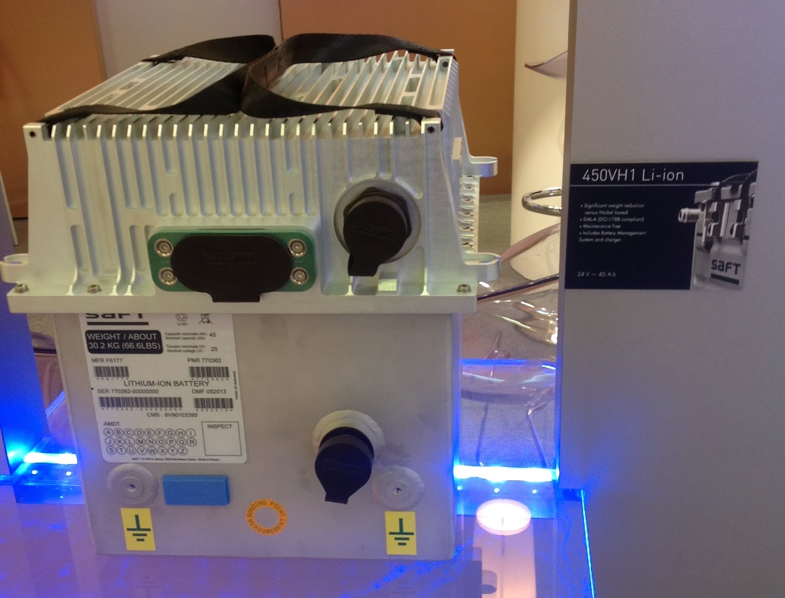 Unlike GS Yuasa, which has released a specification sheet on the 787 batteries (it uses a lithium cobalt oxide chemistry – which is considered the most reactive and inherently volatile electrolytes in lithium ion-based systems), Saft had never revealed the technical characteristics of the A350-900 battery; the voltage of the A350 battery appears to rule out lithium iron phosphate, which is the least volatile lithium-based chemistry. But Airbus could still be using other chemistries considered safer than lithium cobalt oxide, such as lithium nickel manganese oxide.